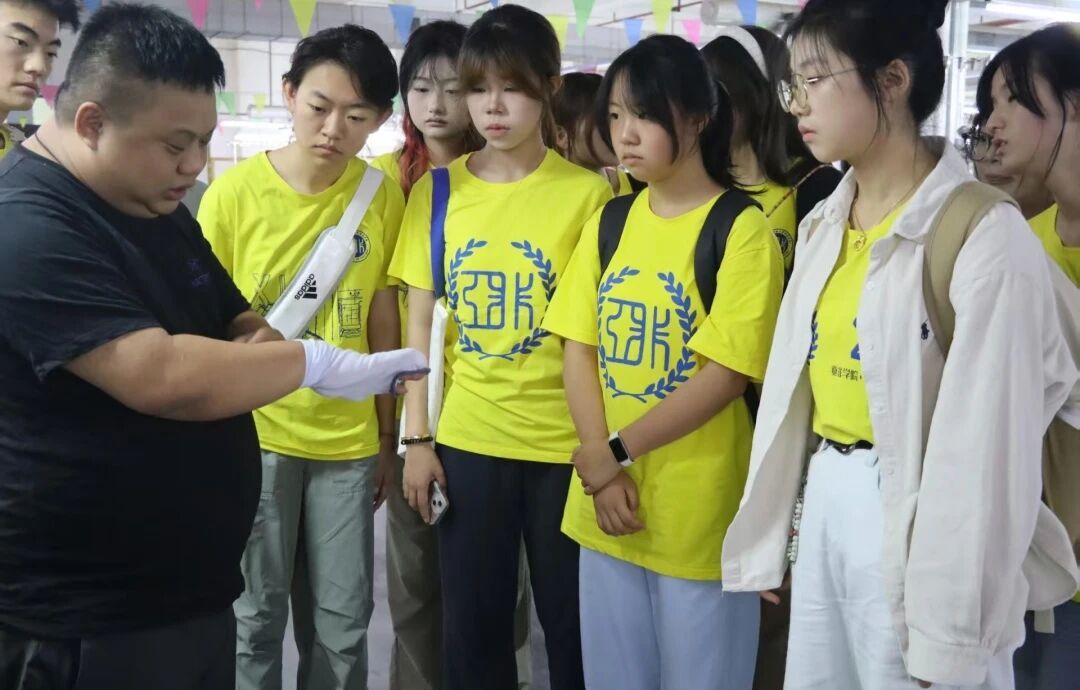 经纬织就匠心,纹样铭刻同心。在易欣服饰有限公司,实践团见证了西装制服的诞生。数字化管理系统精准调度从原料到成品的全流程,职工指尖轻抚布面便知经纬疏密,严谨态度展现出极高的专业素养。车间墙上“五星出东方利中国”的织锦纹样无声诉说着千年祥瑞,与北京援建标识交相辉映,铸牢中华民族共同体意识深植生产一线。企业定期举办员工表彰、文体活动,将团结奋进的基因织入每寸布料。