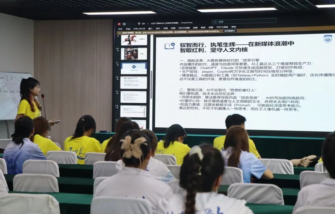 纱线联结世界,技能点亮未来。在美旭纺织车间,雪尼尔纱与包覆纱编织出多彩袜品。芯线与外包纱的精密结构,恰似各民族紧密相依。实践团化身“新媒体讲师”,为职工带来 AI撰稿、手机摄影、短视频剪辑技能培训。职工现场尝试设计海报、生成艺术二维码,车间跃动数字创新的火花,为边疆好物插上“云翅膀”。