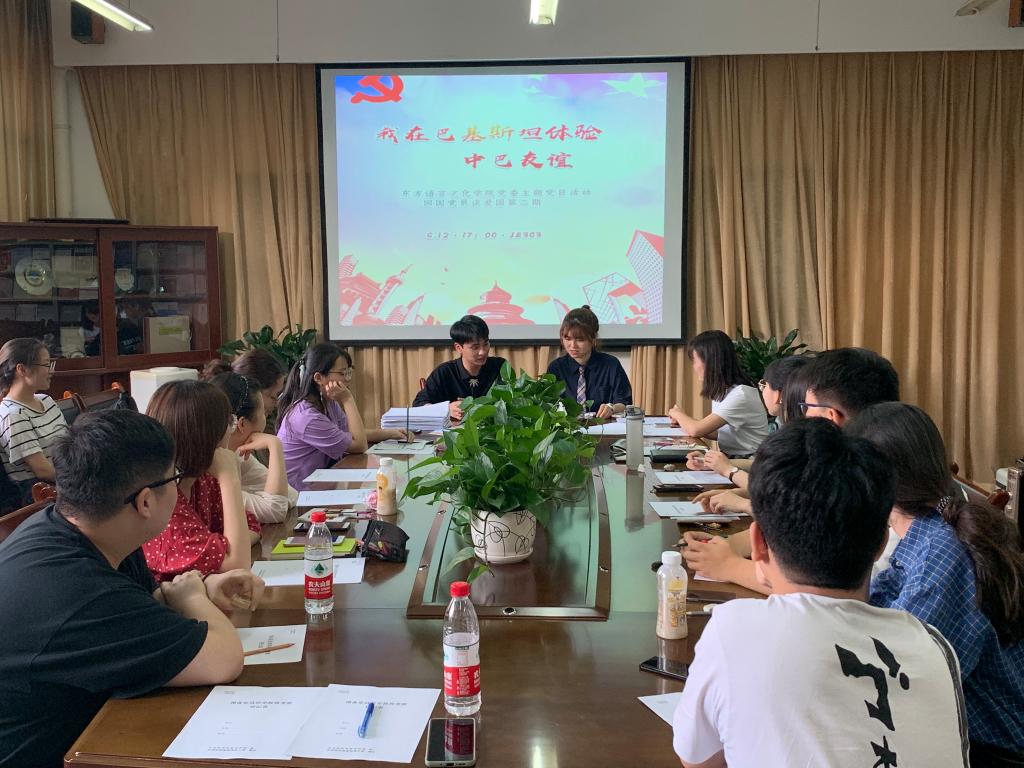 6月12日晚,东方语言文化学院学生基层党支部在学院会议室举办第二期“回国党员谈爱国”主题党日活动,主题为我在巴基斯坦体验中巴友谊,活动邀请了从巴基斯坦国立语言大学留学回国的三位党员分享他们在巴基斯坦体验真实的中巴友谊和中国与日俱增的国际影响力。