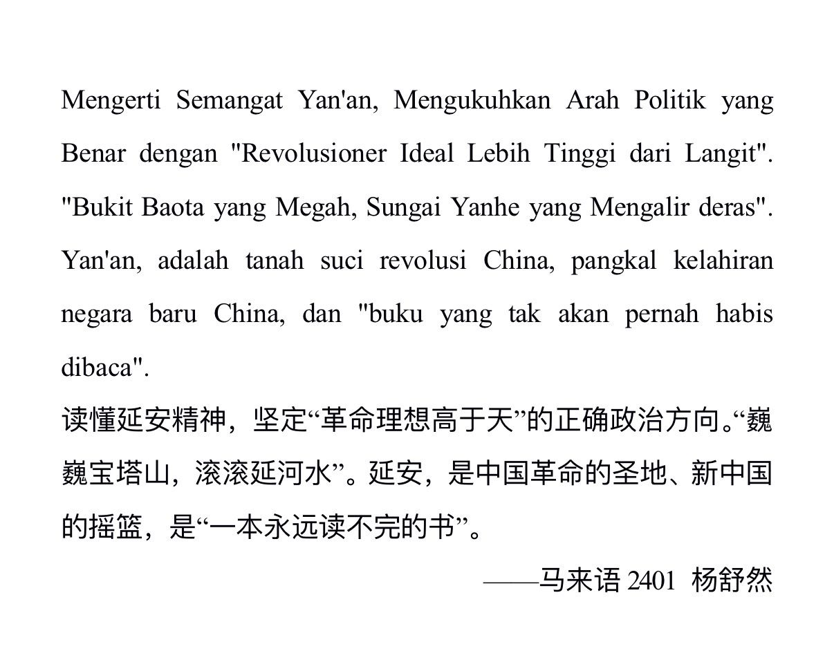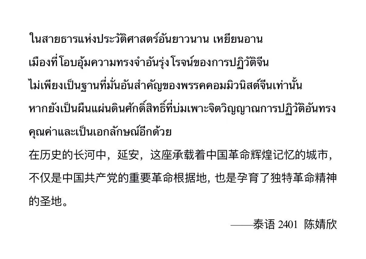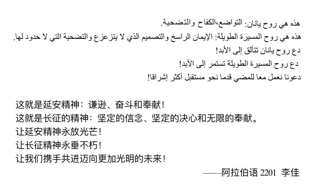 作为我校语种专业最多的学生党支部,亚非学院学生党支部将专业优势与红色教育深度融合,精心策划了多语种朗诵环节。在延安革命纪念馆前的广场上、宝塔山前,学生党员们分享学习感悟,用阿拉伯语、朝鲜语、泰语、乌尔都语等自己所学语种专业,深情朗诵赞颂党的光辉历程,讴歌延安精神时代价值。不同语言的韵律交织回荡在革命圣地,既有异域语言的独特魅力,更有对党的忠诚与热爱的共同表达。主题党日活动既展现了西外学子扎实的专业功底、开阔的国际视野,更让红色故事以多元形式 “活起来”,成为红色教育基地中一道充满青春气息的亮丽风景线。